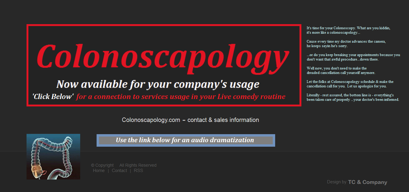 Listen to a sample of usage possibilities at: Colonoscopy Vs. Colonoscapology